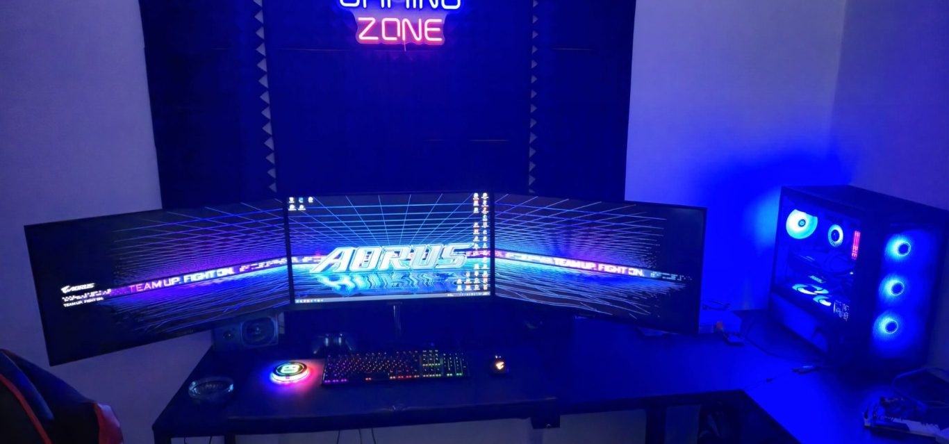 Ziel war ein 3-Monitor-Setup auf einem selbstgebauten Tisch, mit sauberem Kabelmanagement.